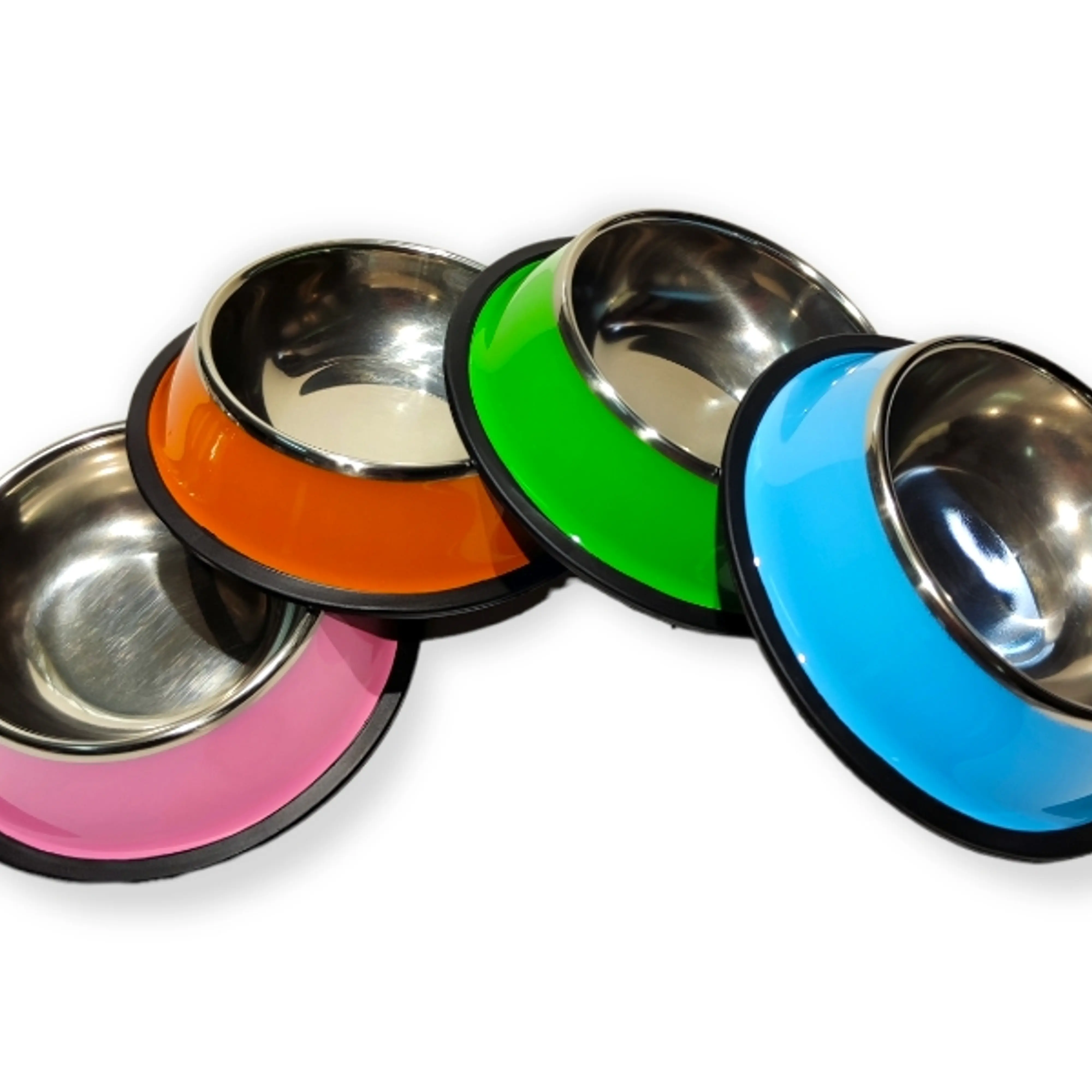 Миски металл с резиновым основанием, цветные, 16 см