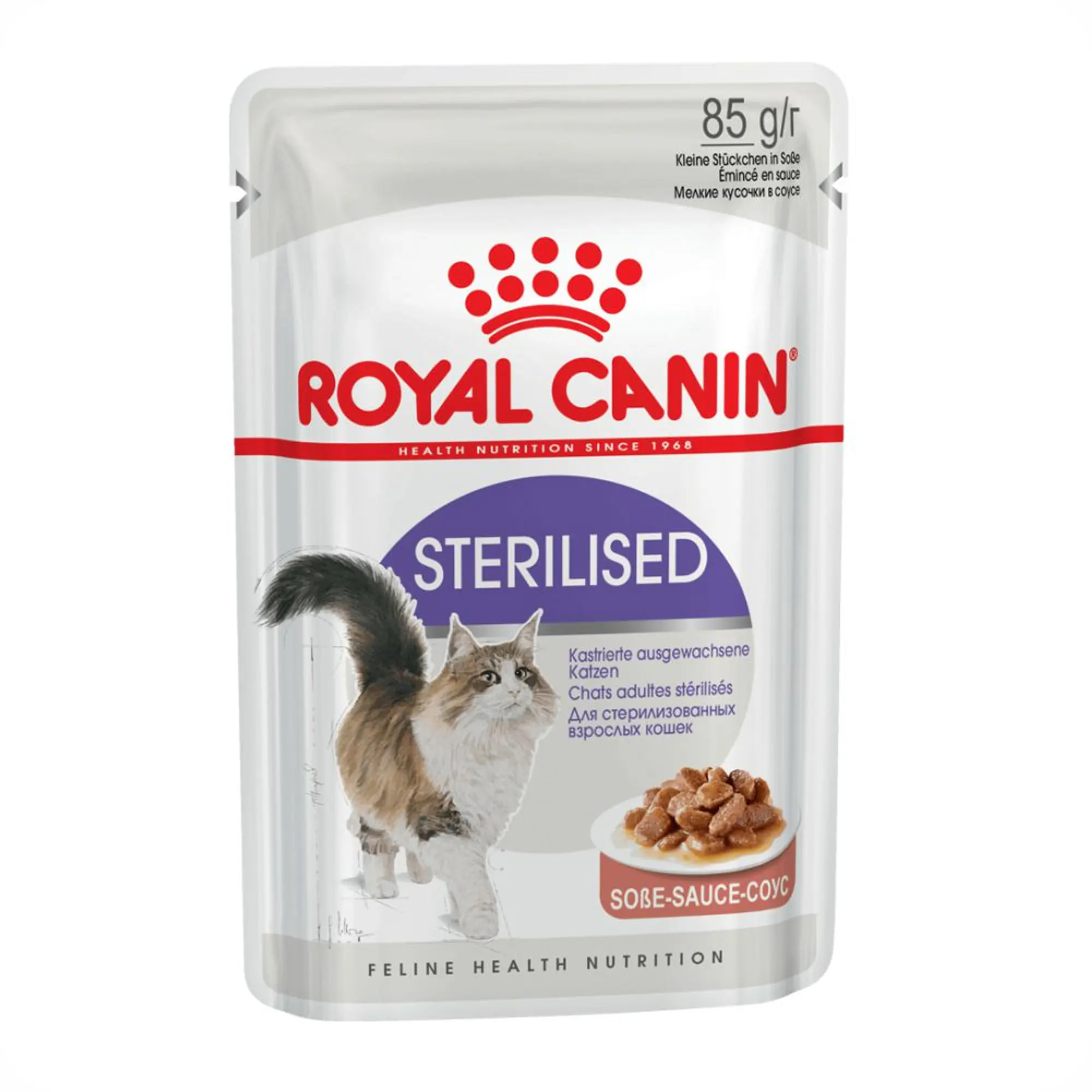 Royal Canin Sterilised в соусе - полноценный влажный корм для стерилизованных кошек старше 12 месяцев. Специально разработанная формула помогает поддерживать оптимальный вес и здоровье мочевыводящей системы. Аппетитные кусочки в соусе соответствуют инстинктивным пищевым предпочтениям.